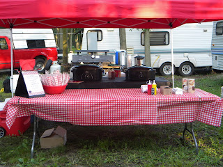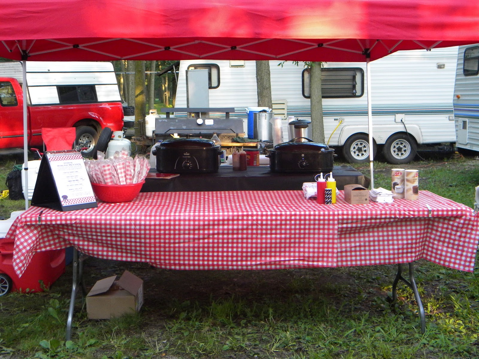 We could not believe our luck! The Darke County Steam Threshers Association is located along State Route 127 at the York Woods that has both water and electric hookups, campsites, and a restroom/shower facility onsite...very important feature for us! We wasted no time in contacting the steam threshers to inquire about setting up our barbecue stand. Once we finalized all the details, picked out our spot, and paid our fees; we went home and started our planning process.