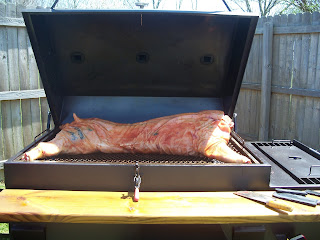 Sweet Baby Ray's is probably one, if not the, most famous barbecue sauce on the market and I'd say anyone who has tried barbecue has more than likely tried their sauce and is familiar with the taste. So what else did we decide to offer our customers as an alternative sauce choice but SBR's. Talk about a boost to the ego...we got it! We bought 2 gallons of SBR's sauce and made 2 gallons of JD's Jacked-Up BBQ Sauce and gave customers their choice of which sauce they wanted. They were free to taste each one and use as much as they wanted on their food. Just as I had predicted at our backyard pig pickin'...we were a hit! We ran completely out of our sauce on Saturday, and had to make another gallon just because of repeat customers choice!!! We did go through some of the SBR's as well, but not even close to the amount of our sauce we went through! We ended up taking a gallon and a half of the SBR's home and only about a half a gallon of our sauce. Not only did we receive compliments on our sauce, but our food as well!